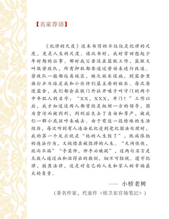 《纪律的尺度》这本书写的不仅仅是纪律的尺度,更是人生的尺度。“天网恢恢,疏而不漏”“手莫伸,伸手必被捉”,这两句名言是无数人通过血和泪得出的教训,切不可轻视。遵守纪律,敬畏法律,这是对自己的人生和家人的幸福最大的负责。