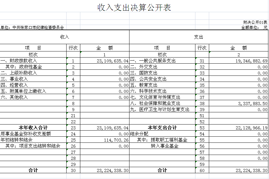 收入支出决算公开表